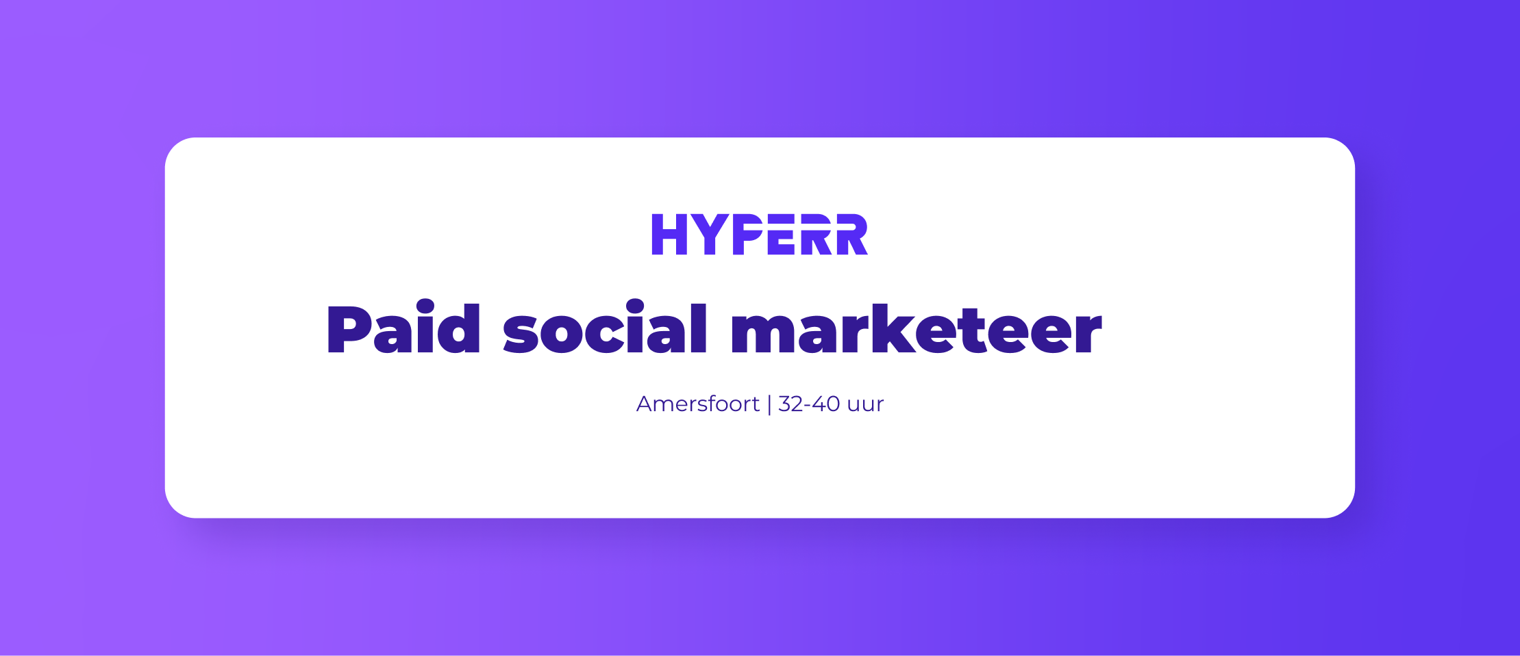 Bij Hyperr zoeken wij een Paid Social Specialist die samen met onze e-commerce klanten de grenzen van social advertising verlegt. Een specialist die niet alleen campagnes draait, maar met creative testing en data-gedreven experimenten conversies maximaliseert.