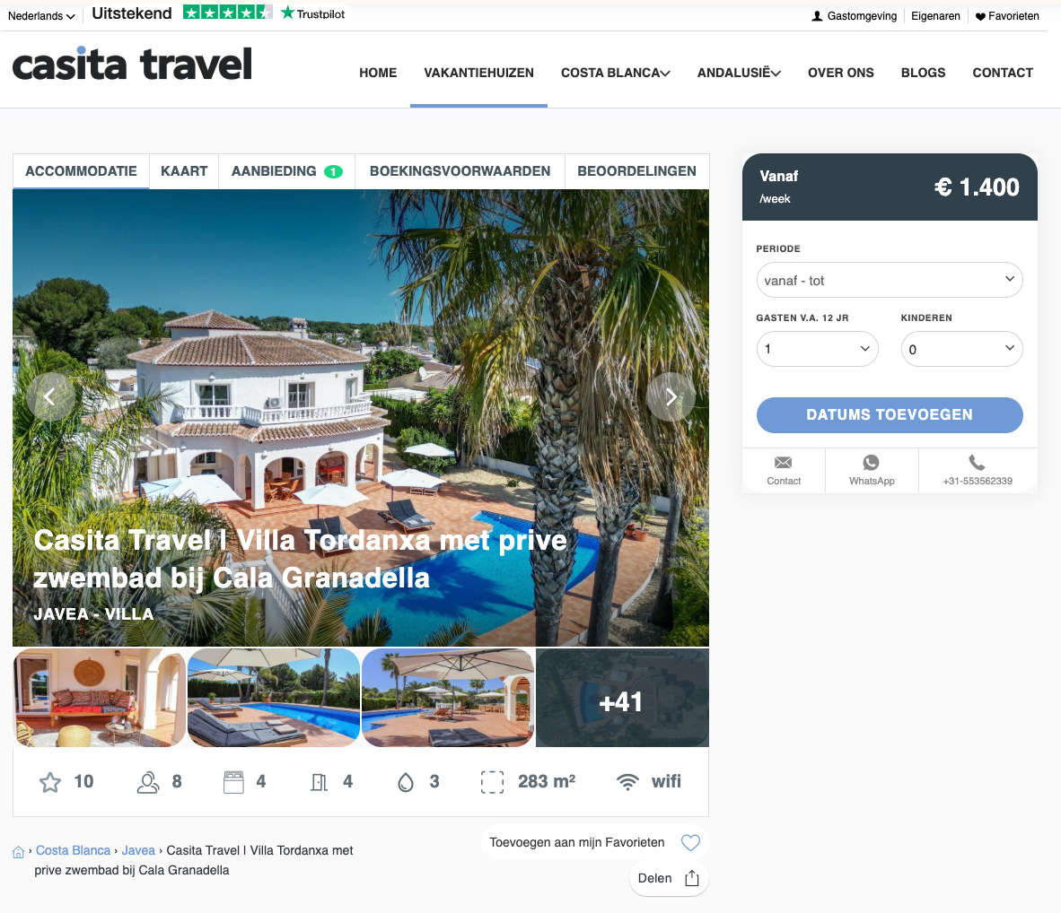 Casita Travel is al jaren dé specialist in vakantievilla's met privézwembad in Spanje. Hun aanbod concentreert zich op twee van de meest populaire regio's onder Nederlandse vakantiegangers: de Costa Blanca en Andalusië.