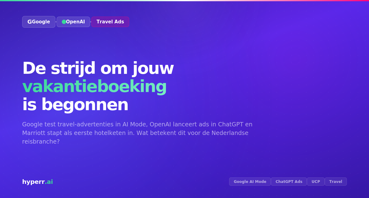 Zoekgedrag verandert razendsnel. AI Overviews, LLM's, Performance Max en steeds meer automatisering vanuit Google en Microsoft. Wie het snelst test, leert en schaalt, wint. Bij Hyperr geloven we dat de combinatie van first-party data, slimme feedstrategieën en AI-gedreven optimalisatie de sleutel is tot performance. Daarom werken we met tools zoals Channable en onze eigen AI-oplossingen.