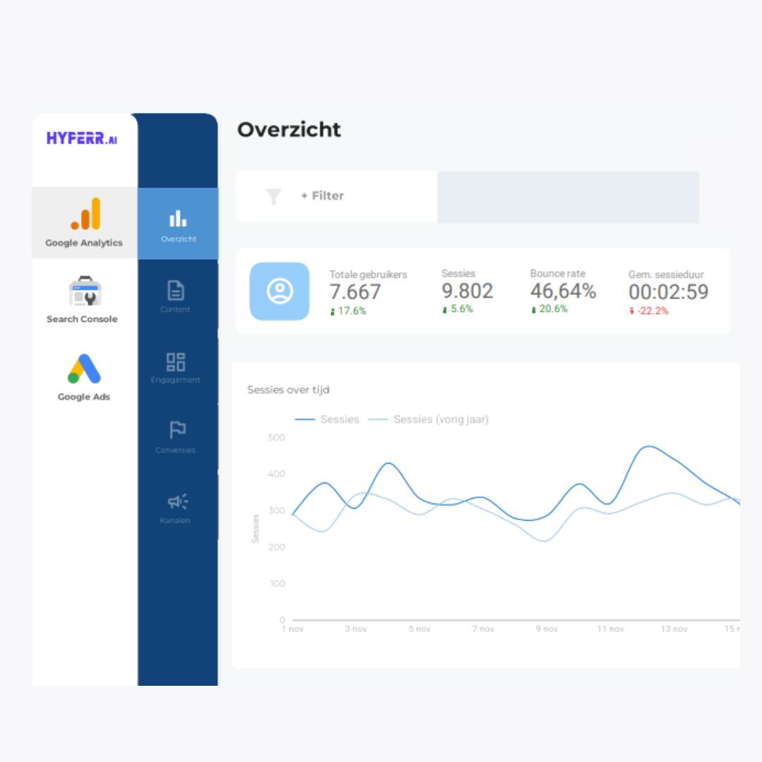 Absolute transparantie is ons uitgangspunt. Je krijgt real-time dashboards, wekelijkse AI-insightsreports, en kan altijd meekijken. Wil je iets aanpassen? Geen probleem. AI doet het zware werk, jij bepaalt de strategie.